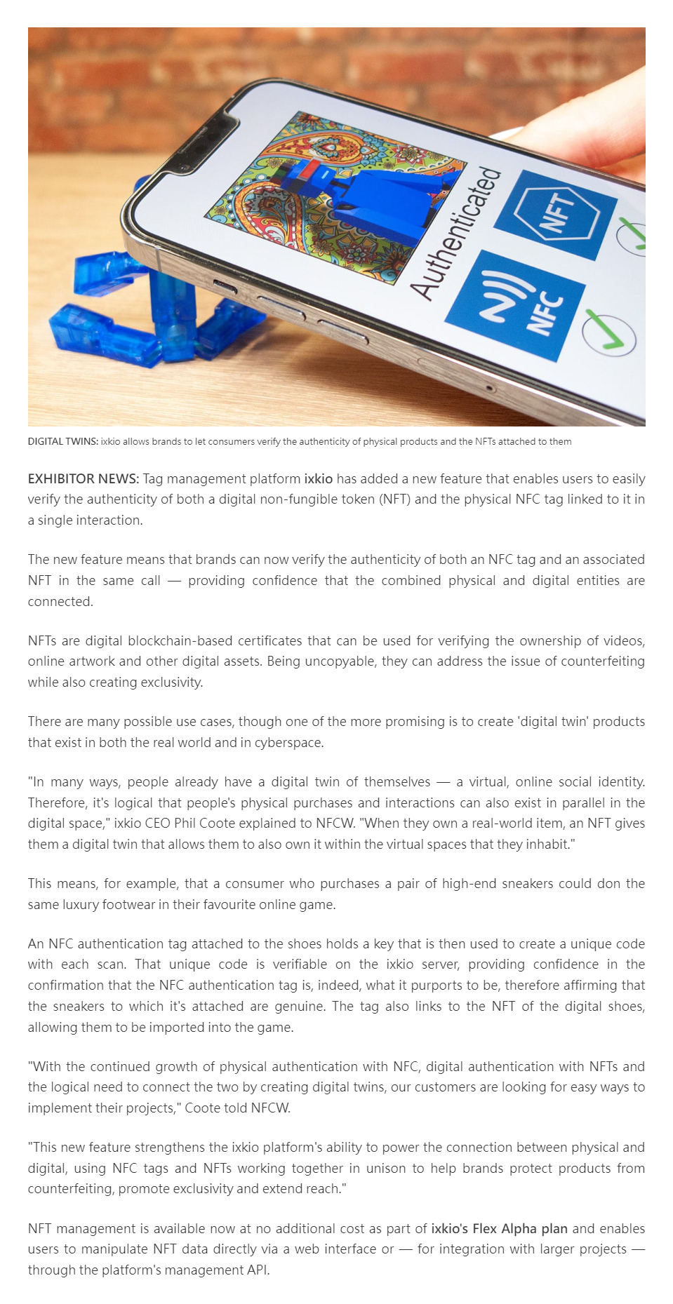 NFC tag management platform ixkio adds support for NFT authentication to create digital twins