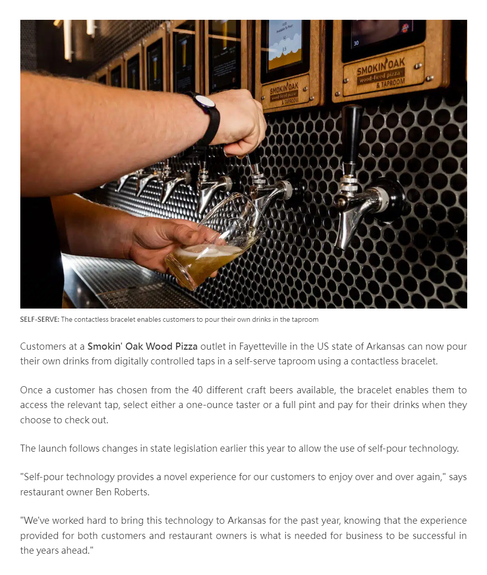 Arkansas pizza restaurant serves up contactless bracelet that lets customers pour their own drinks