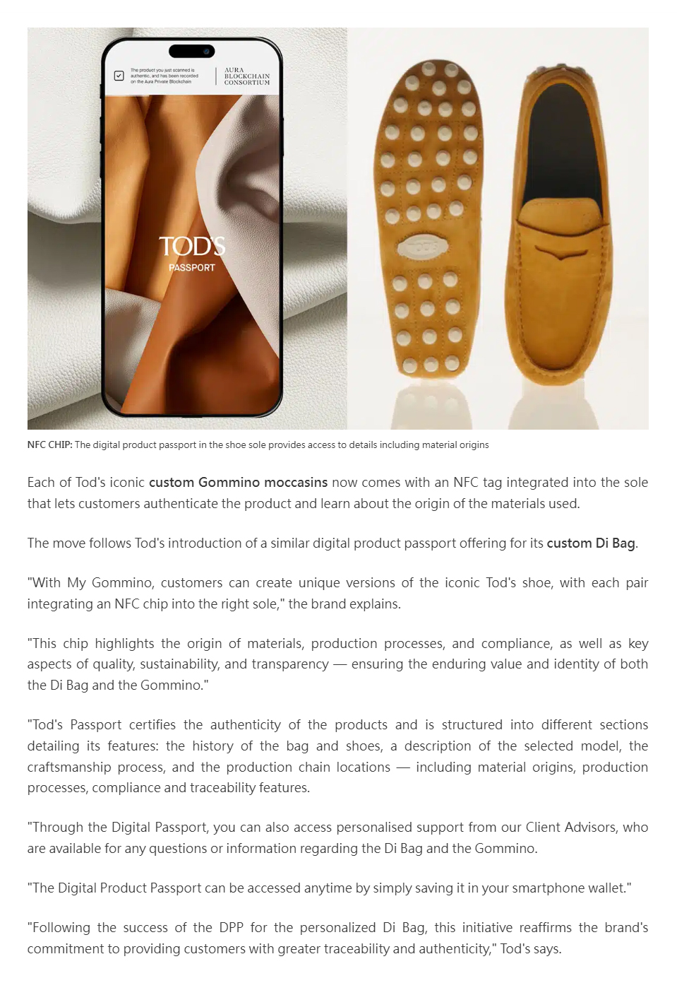Tod's adds NFC digital product passports to custom Gommino moccasins